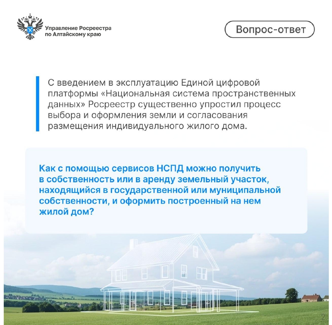 По проекту «Земля для стройки» в августе 2025 года на заседании оперативного штаба было выявлено 4 свободных земельных участка общей площадью более 0,5 га, которые могут быть использованы для жилищного строительства. Данные участки расположены в городе Барнауле и городе Рубцовске.