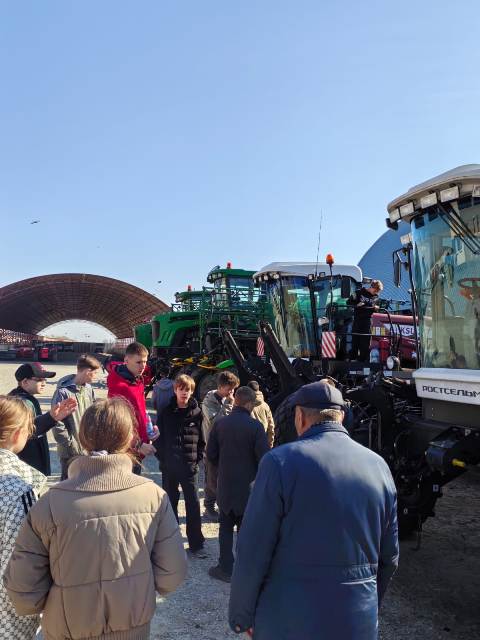Экскурсия началась со знакомства с тракторами Т-4 и ДТ-75. Это легенды советского тракторостроения, восстановленные местными умельцами и еще способные бороздить поля. Школьникам рассказали о выпускавшем их заводе, продемонстрировали работу и предоставили возможность посидеть в кабине. Следующим был трактор К-700, тоже ветеран отрасли, за ним новые «Беларусы». Подростков даже покатали на «железных пахарях» по территории предприятия. Далее перед ними предстали посевные комплексы, опрыскиватели, самоходные косилки и зерноуборочный комбайн. На комбайне ребят также прокатили и немного рассказали об устройстве: где двигатель находится, что такое бункер и выгружной шнек. И наконец, они увидели ростсельмашевские колесные гиганты, ранее бывшие канадскими тракторами Buhler. Как раз в это время специалисты барнаульской сервисной службы проводили техническое обслуживание и показали учащимся приборы, ключи, инструменты для обслуживания и ремонта.