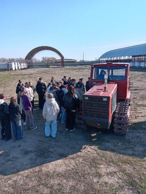 Несмотря на то, что полевой сезон начался, на территории хозяйства остались несколько механизаторов специально для того, чтобы просветить ребят по вопросам сельскохозяйственной техники.