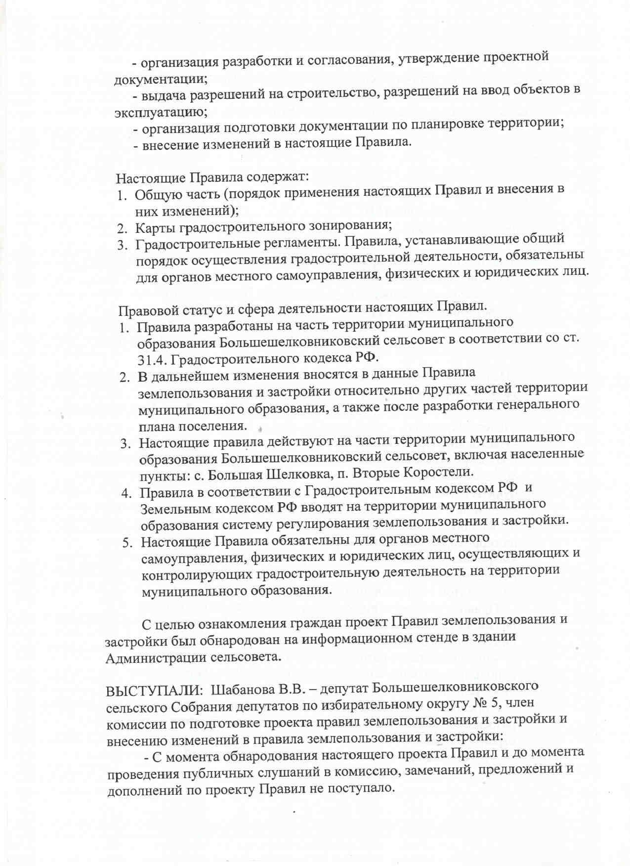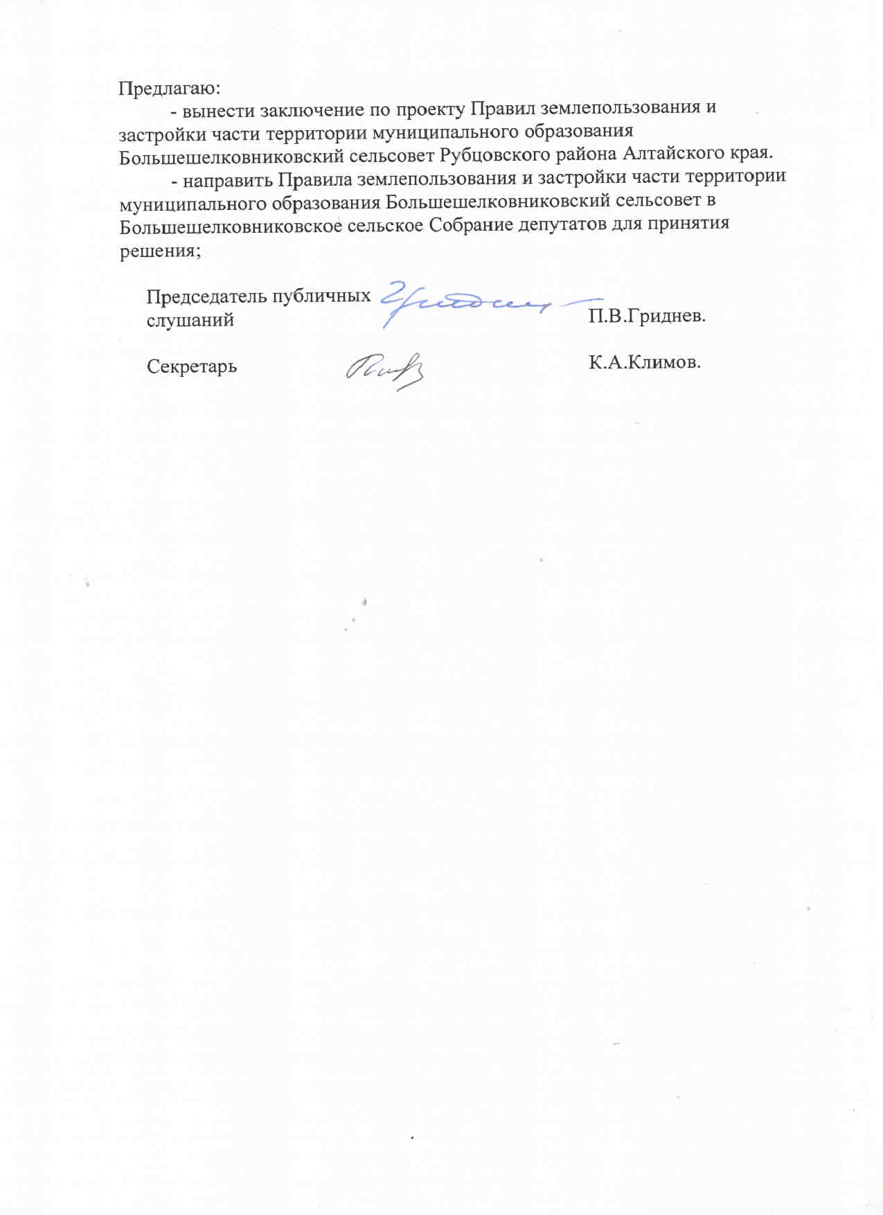 Протокол проведения публичных слушаний по проекту Правил землепользования и застройки части территории муниципального образования Большешелковниковский сельсовет Рубцовского района Алтайского края. Заключение