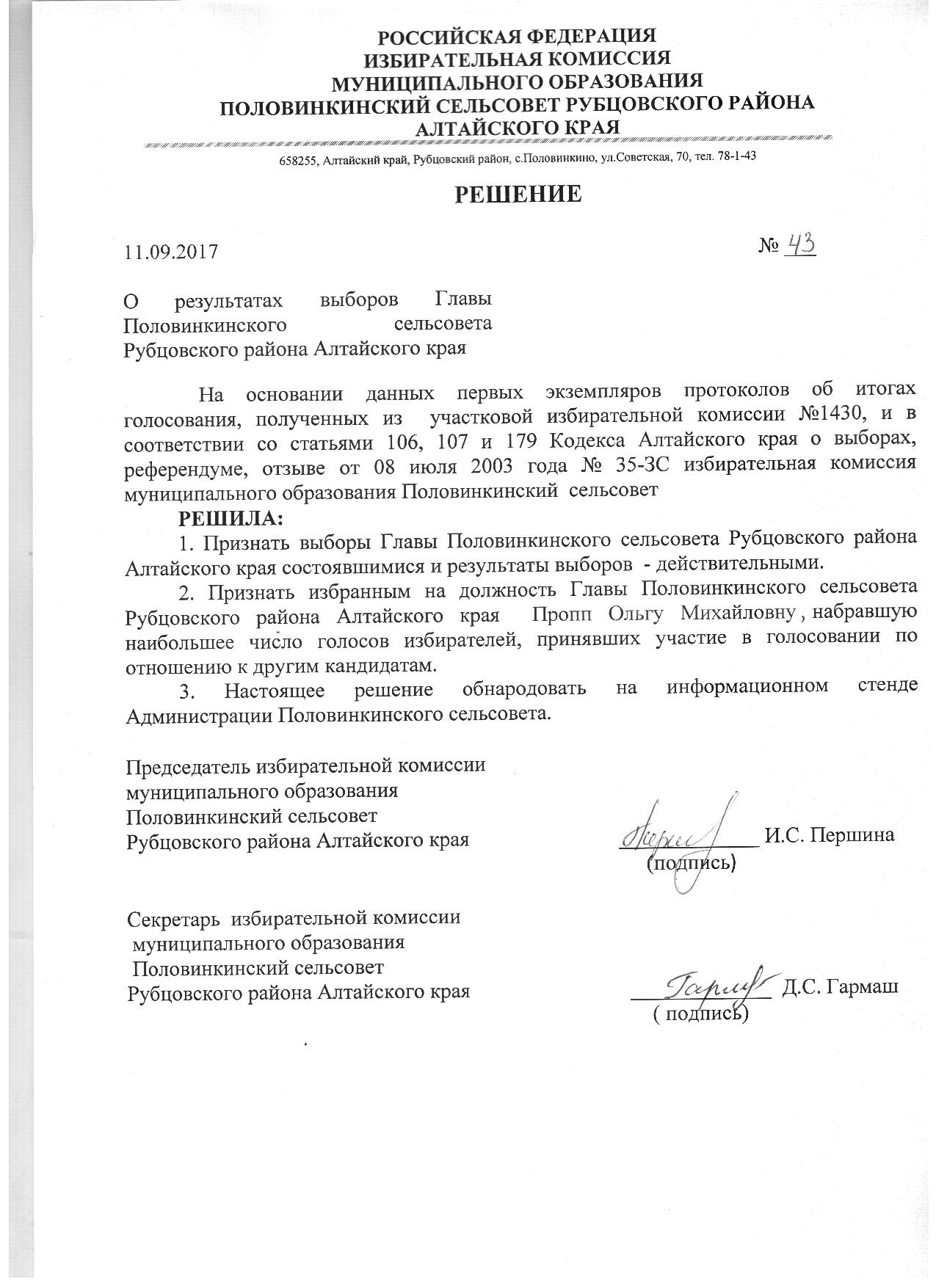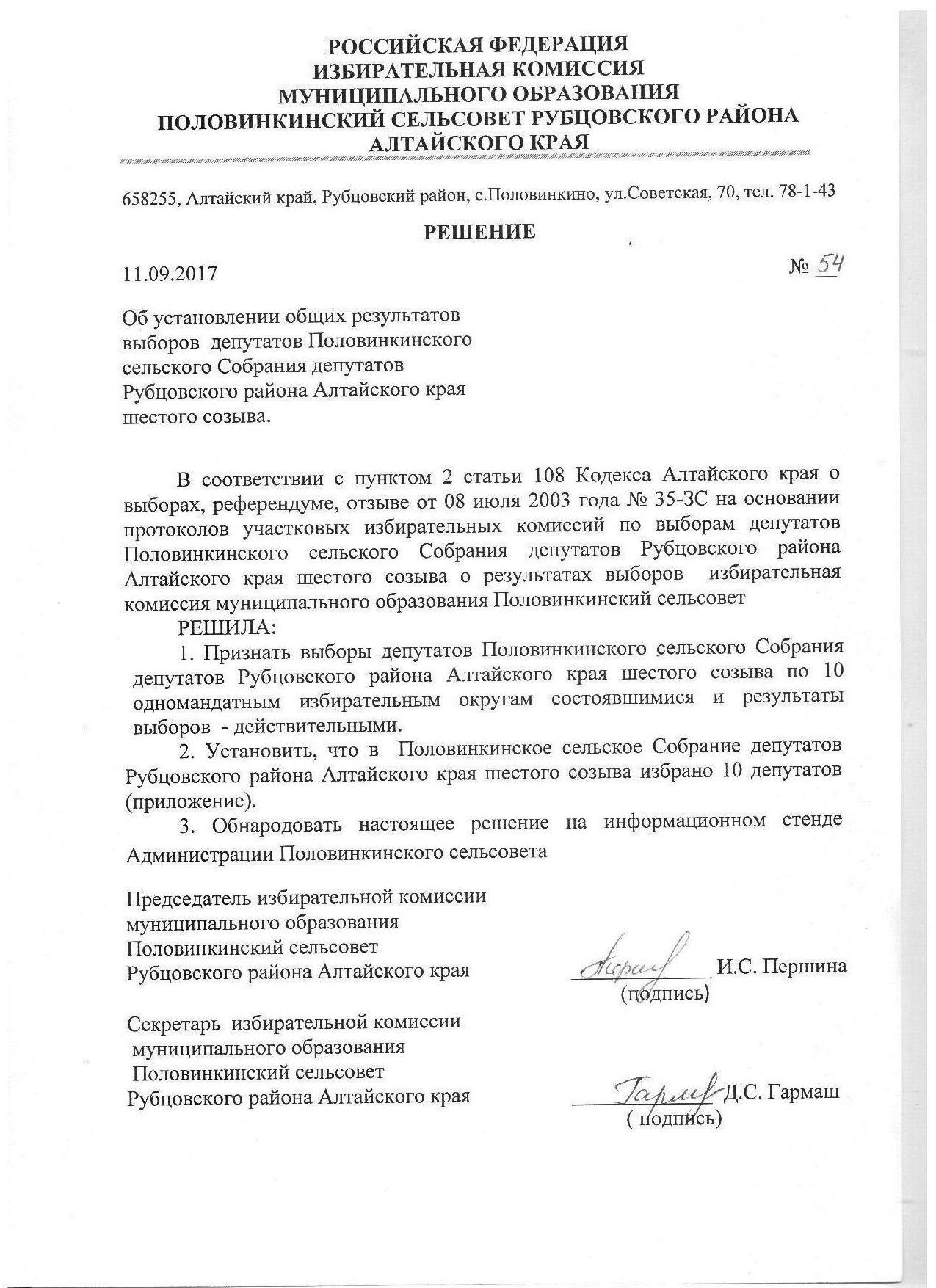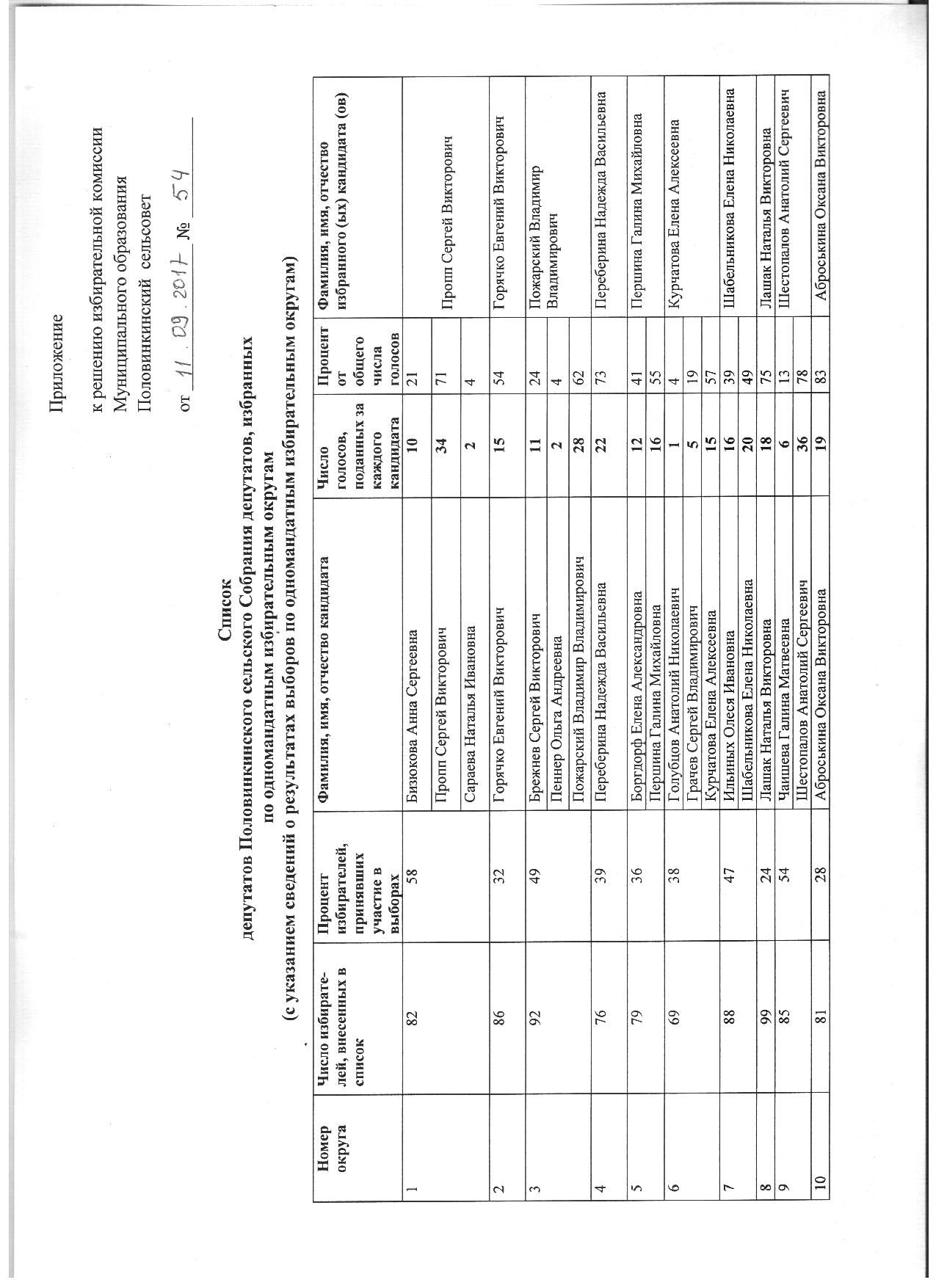 Результаты выборов Главы Половинкинского сельсовета и депутатов Половинкинского сельского Собрания депутатов.