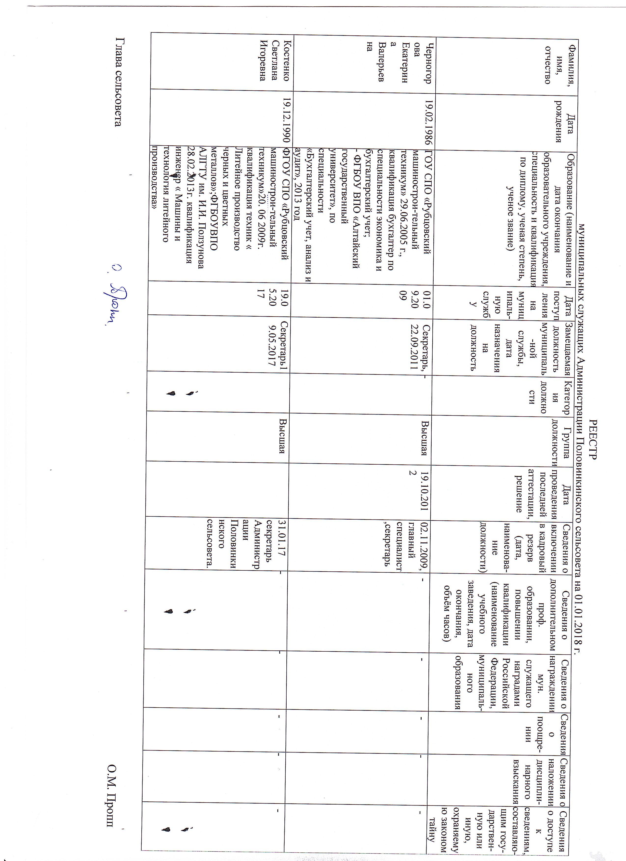 Сведения о численности муниципальных служащих Администрации Половинкинского сельсовета Рубцовского района Алтайского края и фактических затрат на их денежное содержание реестр муниципального образования.