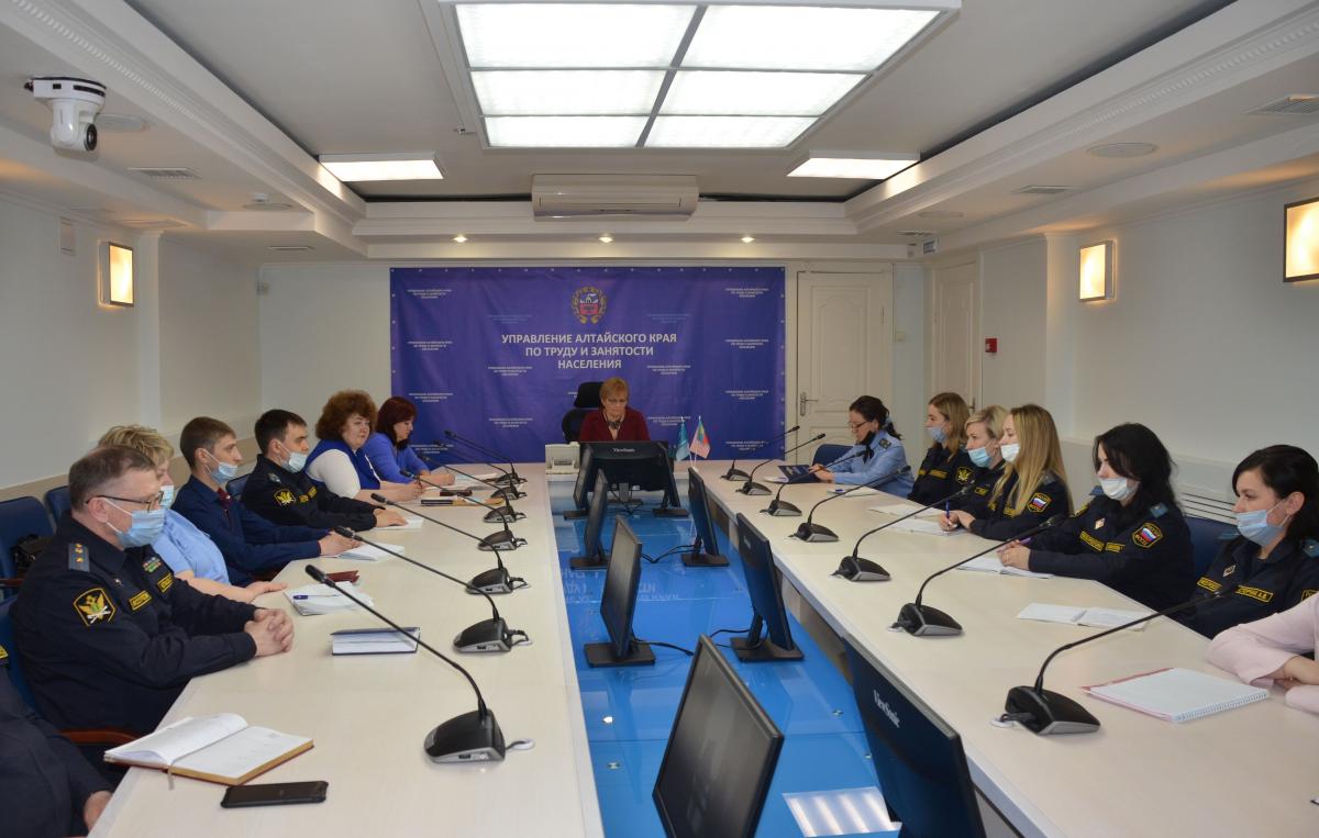 В рамках проекта, на базе Управления по труду и занятости населения по Алтайскому краю, состоялось совместное совещание руководителей центров занятости населения региона и представителей службы судебных приставов Алтайского края.