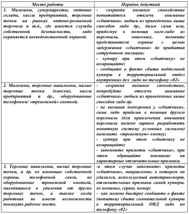 Возникшие вопросы, предложения о порядке действий при обнаружении купюр, вызывающих сомнение в их подлинности, а также имеющуюся информацию о лицах, причастных к изготовлению и сбыту поддельных денег Вы можете сообщить по тел. 02.