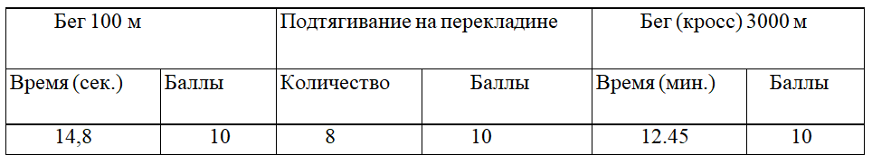 Дополнительное испытание по физической подготовке оценивается в баллах по результатам выполнения трех контрольных упражнений: