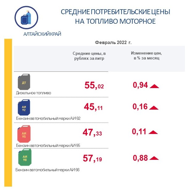 О потребительских ценах на бензин и дизельное топливо в Алтайском крае в феврале 2022 года