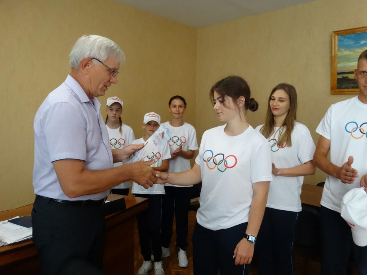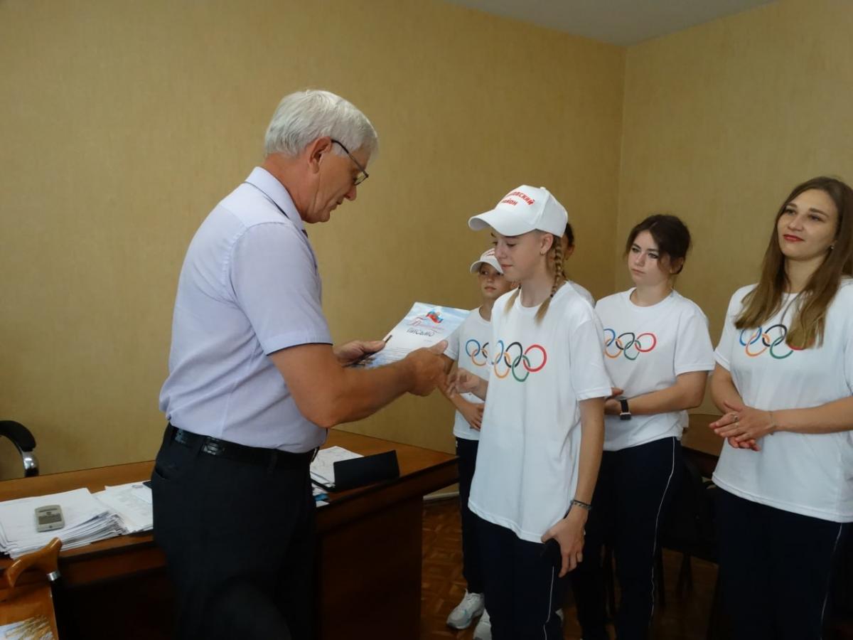 XLIII летняя Олимпиада сельских спортсменов Алтайского края, финальная часть которой пройдет в селе Родино, начнется сегодня и продлится до 16 июля. Утром в Администрации Рубцовского района заместитель главы Администрации района, председатель комитета по образованию Василий Николаевич Костин встретился с финалистами. Вручая спортсменам, отстаивающим честь района, благодарственные письма, руководитель особо отметил усердие спортивной семьи Тренкеншу, которой победа досталась непросто, и Андрея Покатилова, который завоевал две путевки и будет участвовать в двух видах спорта.
