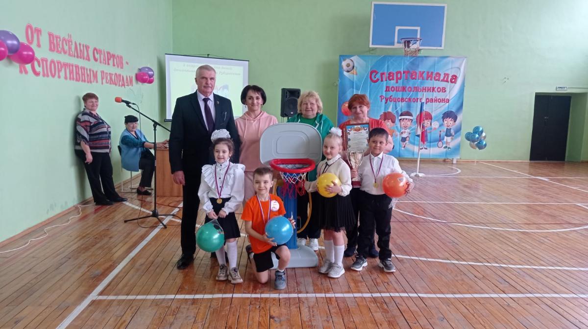 Доброй традицией в нашем районе стало проведение спартакиады для детей дошкольного возраста. И этот год не стал исключением. В этом году Спартакиада была посвящена году семьи и 100-летию Рубцовского района. Цель Спартакиады - воспитание у детей любви к физкультуре и спорту, укрепление их здоровья, повышение двигательной активности, формирование привычки к здоровому образу жизни, популяризация передового опыта в физическом воспитании детей старшего дошкольного возраста. В просторном и светлом спортивном зале СДК с. Веселоярск собрались дошколята и их родители, педагоги и руководители из всех детских садов. Каждая команда подготовила девиз и название, красивую спортивную форму и эмблемы.