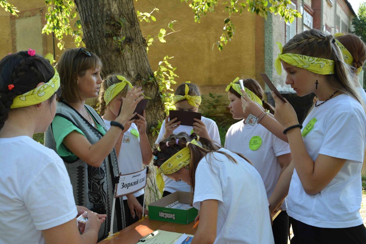 14 августа в честь 100-летнего юбилея района в с. Вишневка состоялось интеллектуальное путешествие для детей и подростков, в котором приняли участие команды из с. Романовка, пос. Дальний, с. Саратовка, с. Вишневка, с. Веселоярск и с. Новониколаевка. Цель командной игры – познакомить подрастающее поколение с Малой Родиной, научить работать в команде, дать возможность раскрыть свои знания в области истории Рубцовского района и Алтайского края. Участникам игры предстояло пройти 7 станций: «Достопримечательности Рубцовского района», «Зоркий глаз», «Раскопки», «Рубцовская», «Алтайская», «Весёлые ребусы». При прохождении станции командам давали пазл. На завершающей станции из полученных пазлов нужно было собрать карту Рубцовского района. «Штаб» контролировал, нарушения правил игры, проверял правильность выполненных заданий.