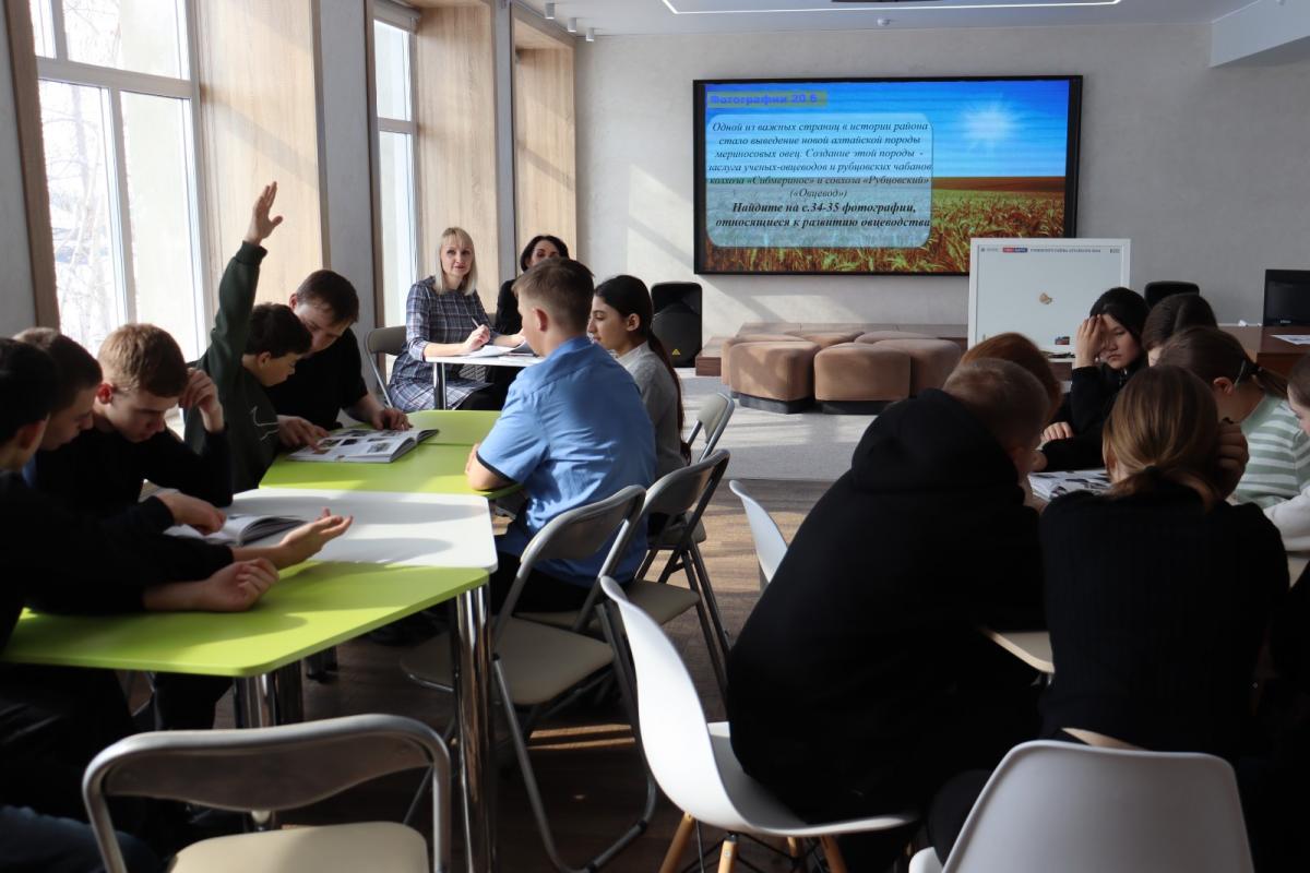 Ученики 8 «а» класса Веселоярской средней общеобразовательной школы разделились на команды и познакомились с подарочным изданием о Рубцовском районе, выпущенным к его столетию. Участники мероприятия отвечали на вопросы, зарабатывая баллы в различных номинациях: «Фотографии», «Известные люди», «Факты» и «Это интересно», а также соревновались в сборке Спилс-карты Рубцовского района.