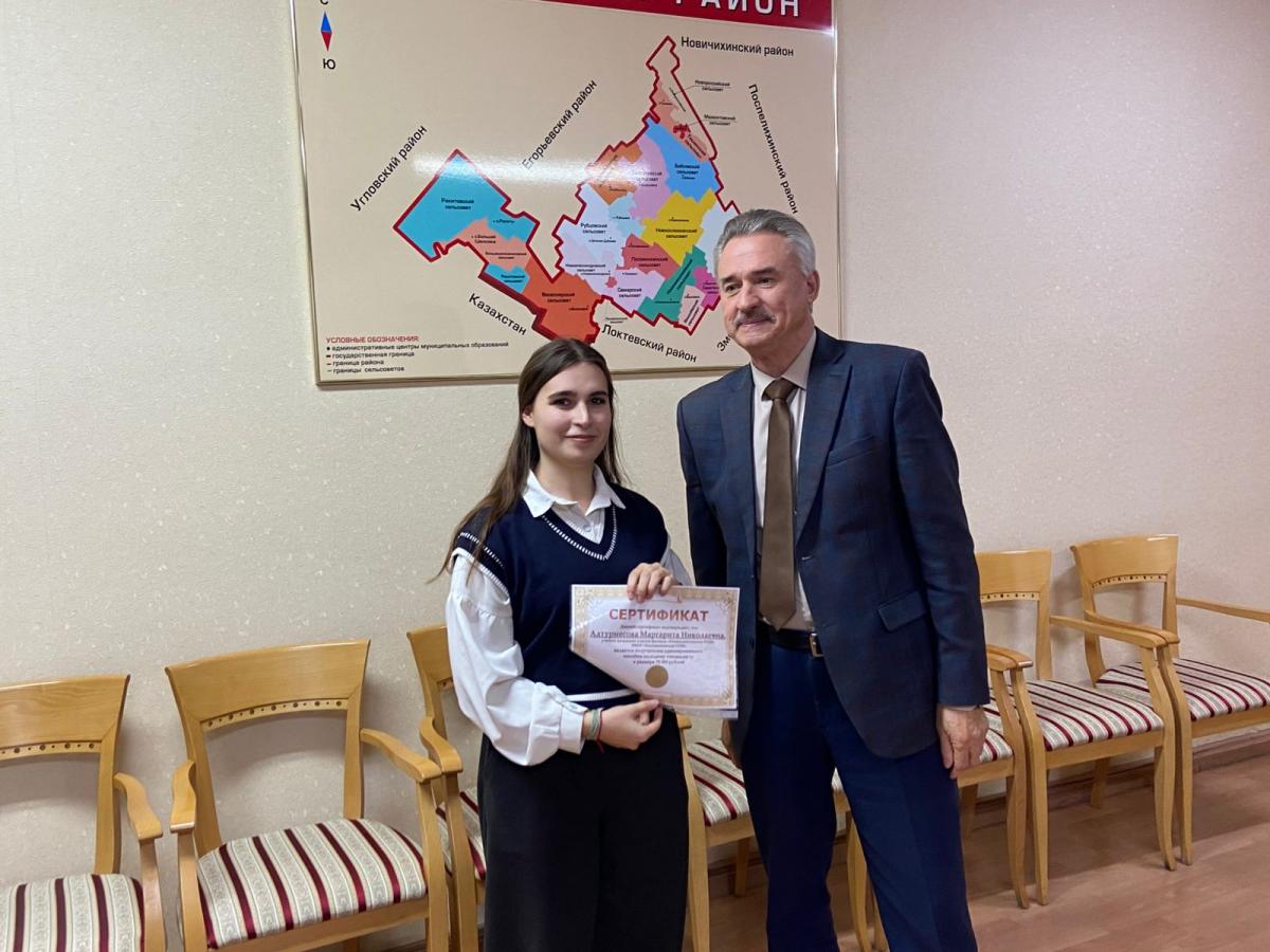 В качестве меры социальной поддержки молодых специалистов школ района, Глава района вручил молодым специалистам сертификаты на выплату единовременного пособия.