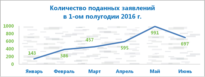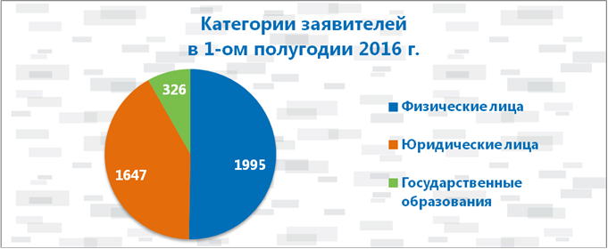 ![]() За 6 месяцев 2016 года в качестве заявителей выступило 1995 физических лиц, что составляет 50% от общего количества заявителей (3667), воспользовавшихся сервисом Официального сайта Росреестра для подачи заявлений на регистрацию прав.